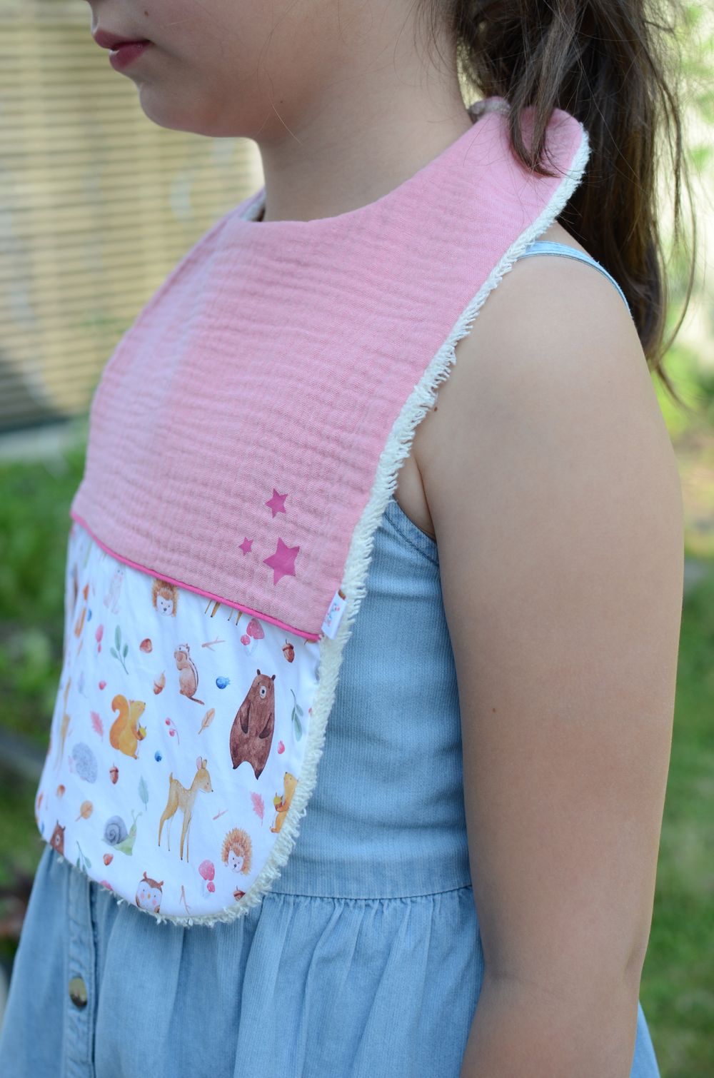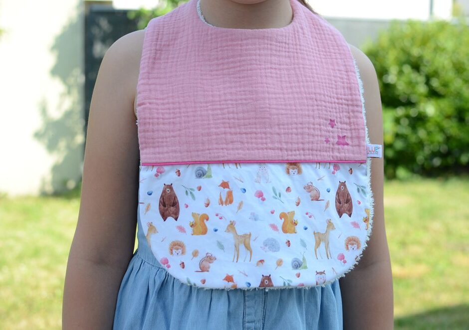 Grand bavoir Collection ‘Animaux de la forêt’ Rose