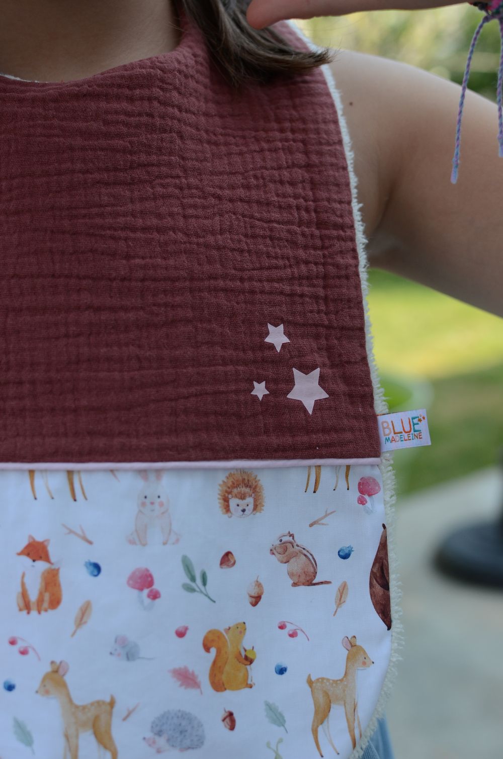 - Recto: double gaze de coton 100% bio certifié GOTS , popeline de coton 100% bio certifiée GOTS imprimée et passepoil contrastant