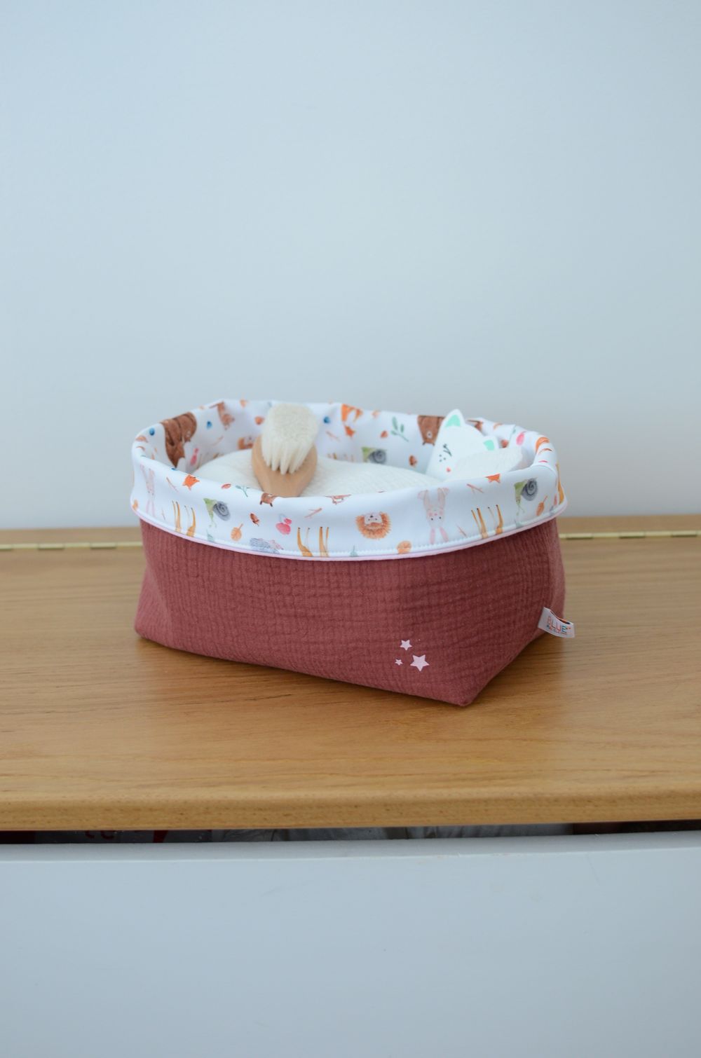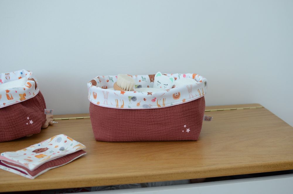 Grand panier de rangement Collection ‘Animaux de la forêt’ Terre de sienne