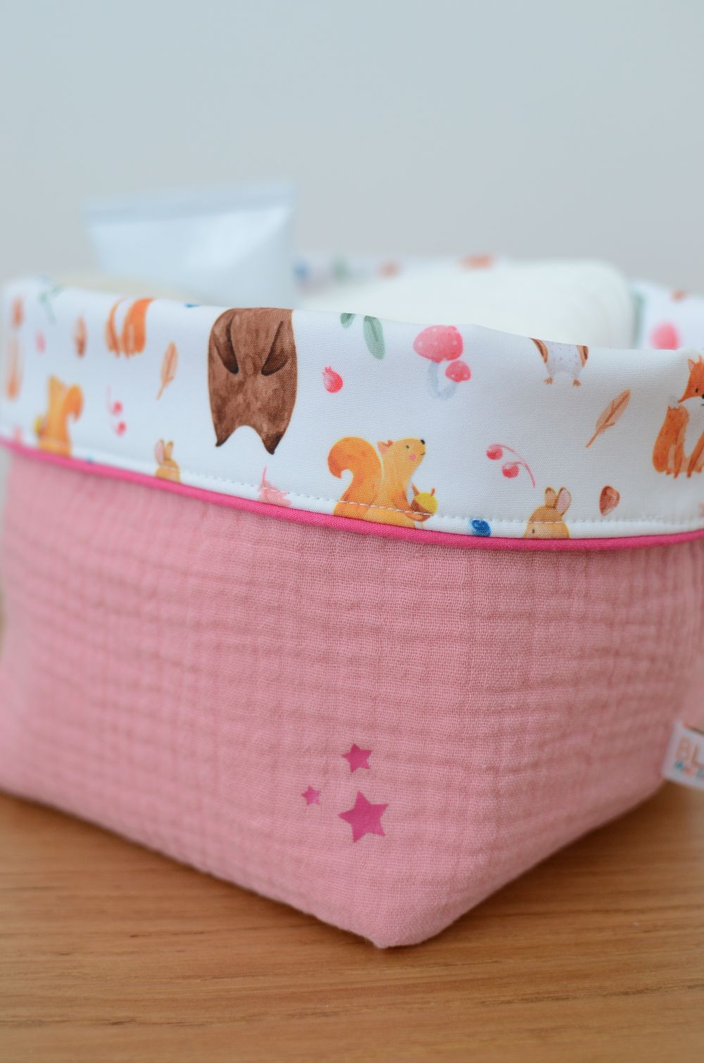 - Tissu extérieur: double gaze de coton 100 % bio GOTS