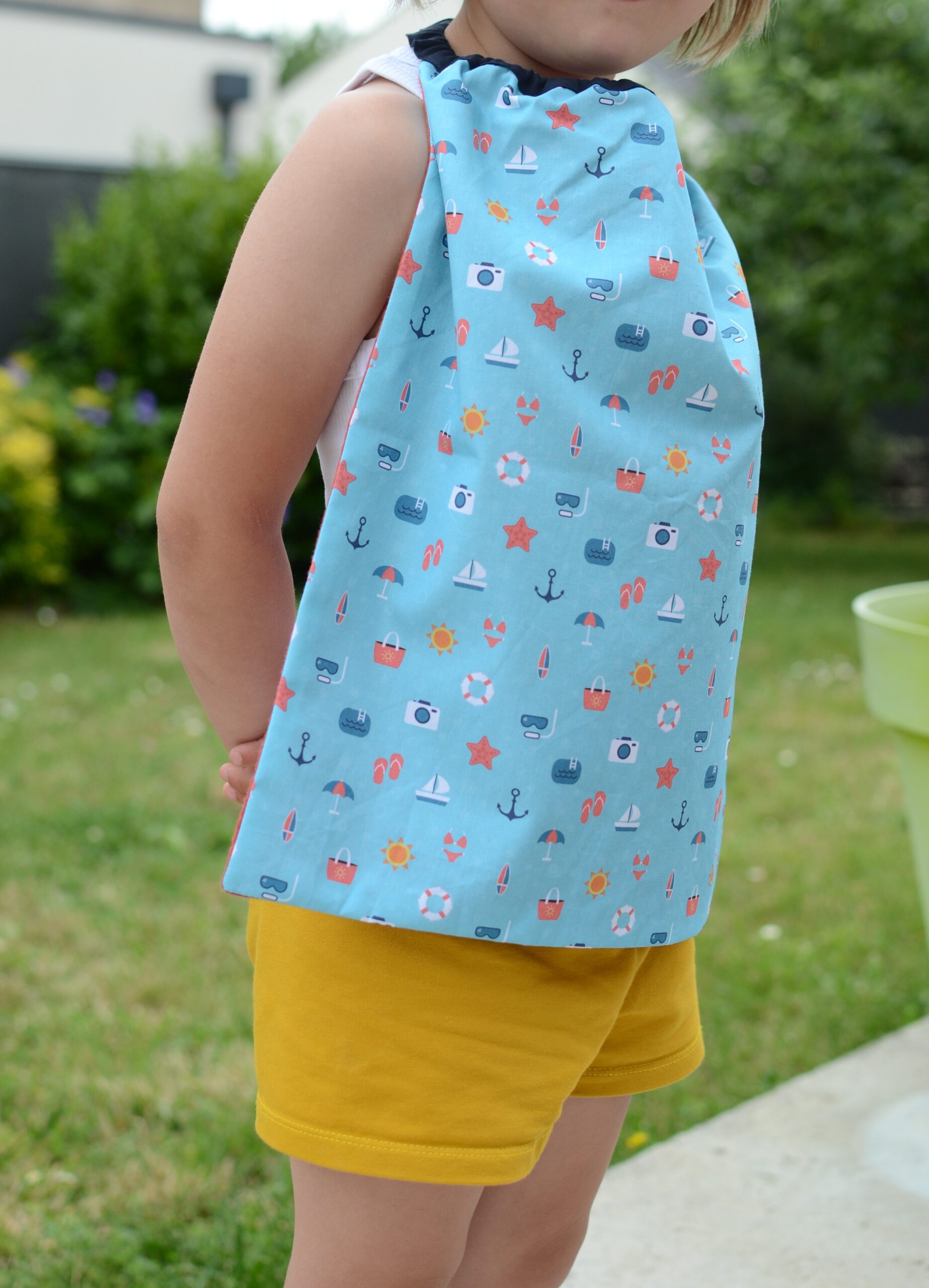 - Fermeture par un biais bleu gris élastiqué (taille de l’élastique 40cm)